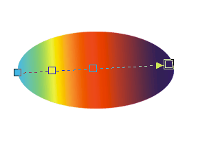 Color nodes are solid color squares that mark the beginning and the end of the gradient arrow you created with the Interactive fill tool. The Midpoint slider controls where the two colors intersect along the arrow.