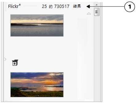 单击显示/隐藏箭头 (1) 可隐藏或显示位于特定位置的搜索结果。