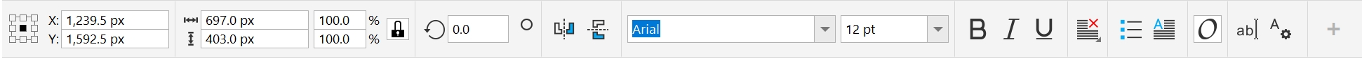 Por exemplo, ao clicar na ferramenta Texto na caixa de ferramentas, a barra de propriedades exibe os comandos relacionados a texto. No exemplo abaixo, a barra de propriedades exibe ferramentas de formatação, alinhamento e edição de texto.