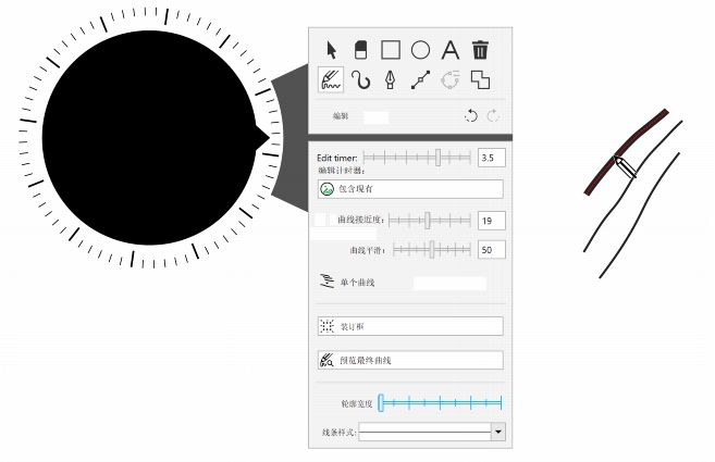 | • | 要在延迟时间过去之前立即调整笔触,只需单击即可。 |