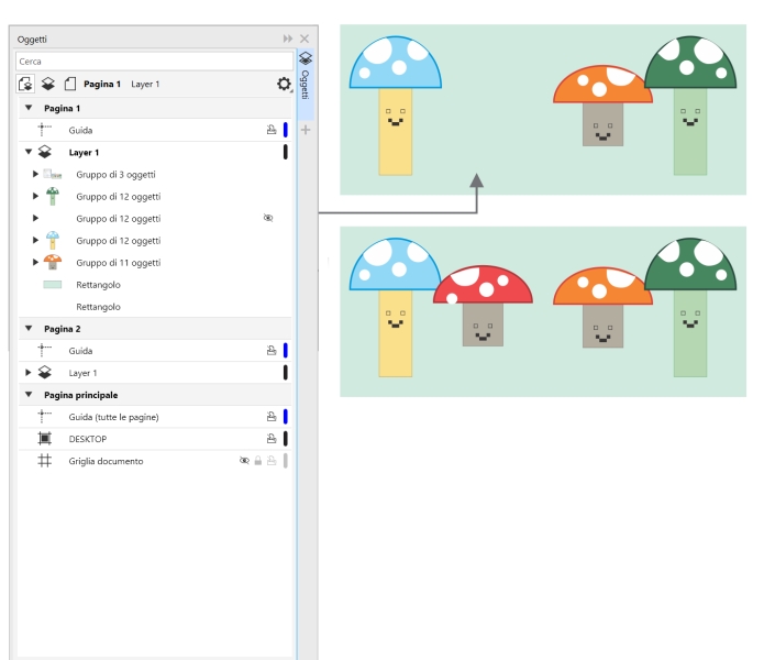CorelDRAW consente di nascondere oggetti e gruppi di oggetti per modificarli all'interno di progetti complessi e facilitare le operazioni nei disegni.