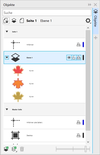 | 2 . | Klicken Sie im Andockfenster Objekte auf den Namen der Ebene, die Sie bearbeiten wollen. |