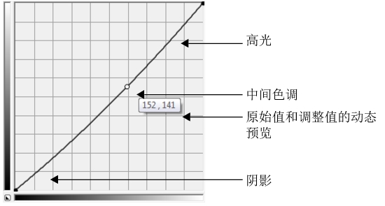 图形的 X 轴代表原始图像的色调值;图形的 Y 轴代表调整后的色调值。向上和向左移动曲线可加亮图像并增加任何通道内的颜色;向下和向右移动曲线可加暗图像或减少给定通道的颜色。例如,如果您具有一个带有蓝色色偏的图像,您可以减少图像中的蓝色,方法是选择活动通道列表框中的蓝色通道,并向下和向右移动曲线。