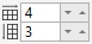 | 2 . | Digitare i valori nelle parti superiore e inferiore della casella Colonne e righe della barra delle proprietà. |