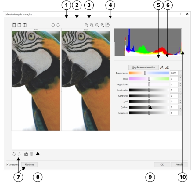 All'interno dell'Image Adjustment Lab, è possibile utilizzare le seguenti funzioni: