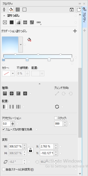 | 3 . | [ステップ] チェック ボックスをオフにしてグラデーションのステップをロック解除し、[ステップ] ボックスに値を入力します。 |