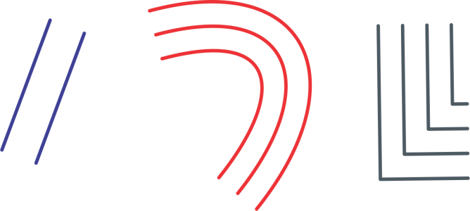 Von links nach rechts: Paralleles Zeichnen mit Hilfsmittel 2-Punkt-Linie, Hilfsmittel 3-Punkt-Kurve und Hilfsmittel Stift