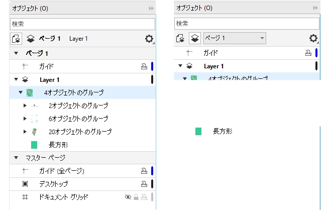 レイヤ、ページ、グループ (およびその中にあるネスト グループ) は 1 回クリックすれば拡張できます。