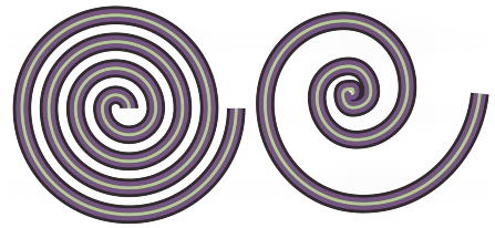 A symmetrical spiral (left) and a logarithmic spiral (right)