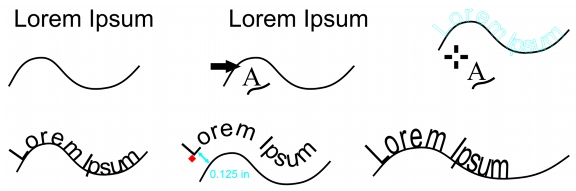 After you fit text to a path, you can adjust the text position relative to that path. For example, you can mirror the text horizontally, vertically, or both. Using tick spacing, you can specify an exact distance between the text and the path.