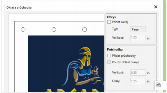 Dialogové okno Okraj a průchodka