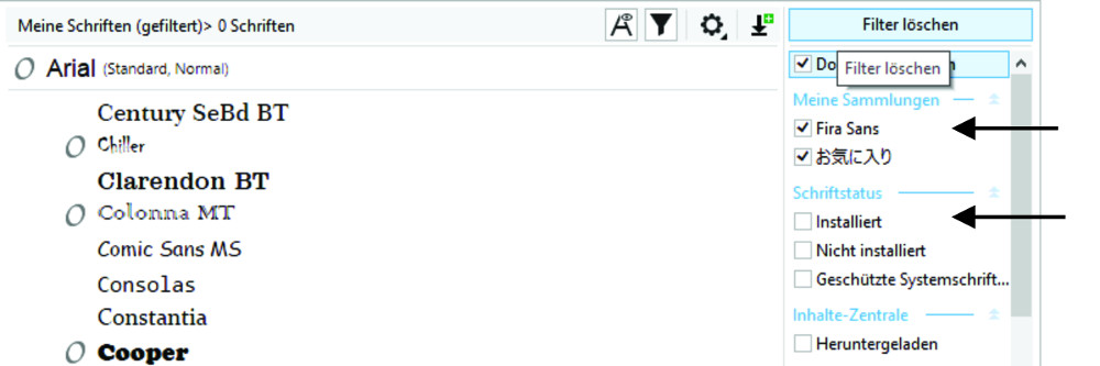Durch die Anwendung von Filtern können Sie mühelos auf die Schriften in den heruntergeladenen Schriftpaketen zugreifen.