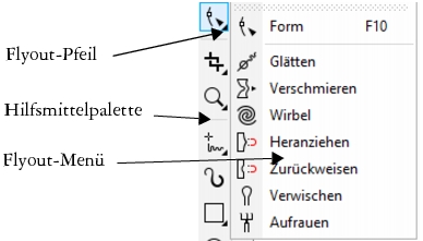 Wenn Sie im Standardarbeitsplatz auf den Flyout-Pfeil des Hilfsmittels Form klicken, wird das Flyout Formbearbeitung geöffnet.