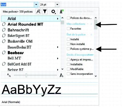 Vous pouvez facilement accéder aux polices depuis les packs de polices téléchargés en appliquant des filtres.