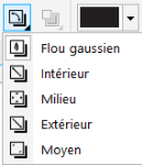 Les ombres portées semblent plus réalistes lorsqu’elles utilisent l’adoucissement du flou gaussien, qui est l’option par défaut. Pour modifier l’adoucissement des ombres portées, utilisez le bouton Sens de l’adoucissement dans la barre de propriétés.