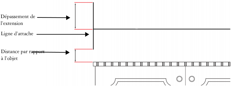 | 4 . | Pour indiquer la longueur du dépassement de l’extension, cochez la case Dépassement de l’extension et entrez une valeur dans la zone Distance. |