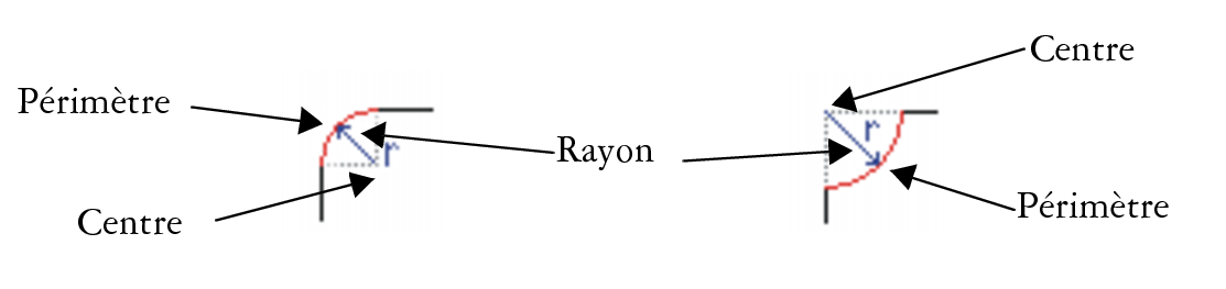 De gauche à droite : rayon d’un angle arrondi et rayon d’angle avec bavure.