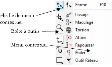 L’outil Maculage permet de former un objet en tirant les extensions ou en créant des retraits le long de son contour. |