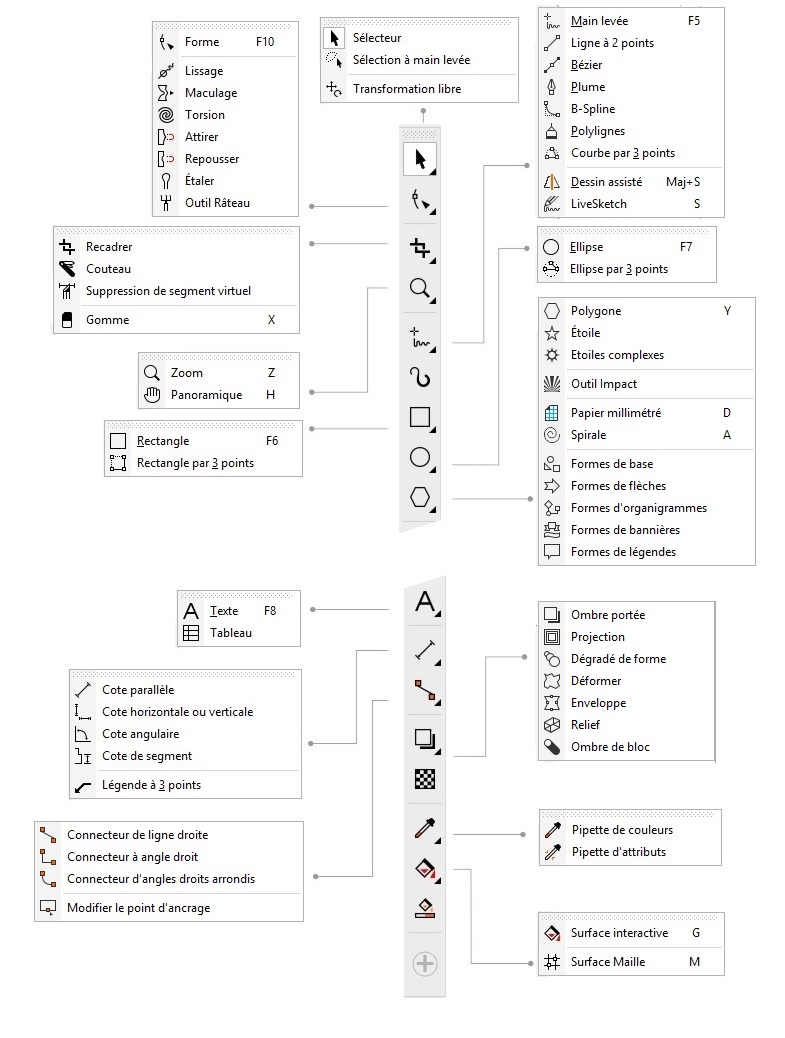Le tableau suivant décrit les outils de la boîte à outils CorelDRAW.
