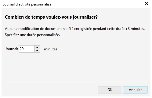 Boîte de dialogue Journal d’activité personnalisé