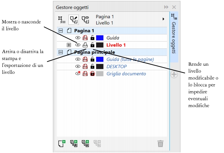 | Se l'icona Mostra o nasconde è inattiva significa che il livello è nascosto. |