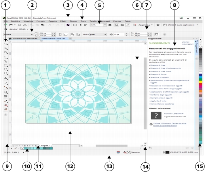 Di seguito viene visualizzata la finestra dell’applicazione di CorelDRAW.