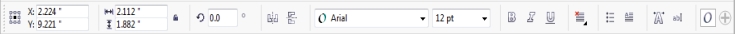 たとえば、ツールボックスでテキスト ツールをクリックすると、プロパティ バーにはテキスト関連のコマンドが表示されます。以下の例では、プロパティ バーに、テキストのフォーマット、整列、および編集用のツールが表示されています。
