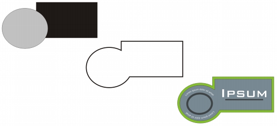 可以在选定对象(左)周围创建边界。边界将创建为新的对象(中),该对象可用作最终徽标(右)的剪切线或拼版。