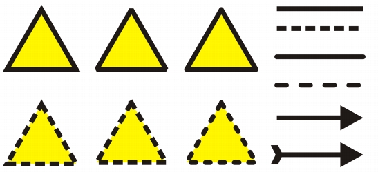 线条的处理方式与闭合形状(如椭圆形和多边形)的轮廓处理方式相同。在某些程序中,轮廓也称为笔触或粗线条。