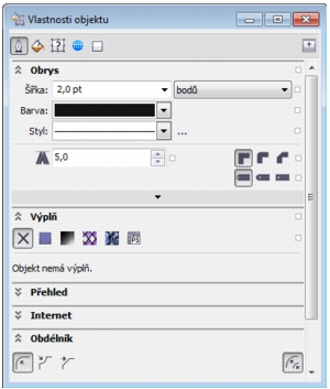 Aplikace CorelDRAW X6, nyní obsahuje přepracovaný ukotvitelný panel Vlastnosti objektu, což je jediný nástroj vlastností a možností formátování, jehož funkce závisí na objektu. Seskupením všech nastavení objektů do jednoho umístění pomáhá tento ukotvitelný panel šetřit čas a rychleji než kdy dříve dolaďovat vaše návrhy.