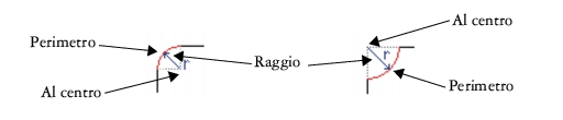 Da sinistra a destra, è possibile visualizzare il raggio di un angolo sagomato e quello di un angolo smerlato.