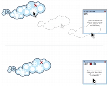 При перетаскивании большинства векторных объектов все цвета
