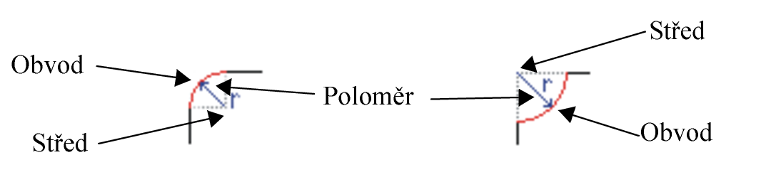 Zleva doprava vidíte poloměr zaobleného rohu a poloměr vykrouženého rohu.