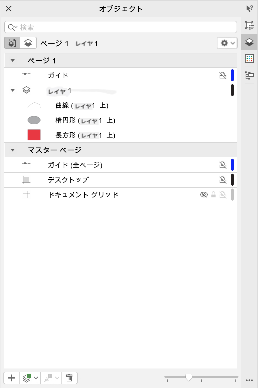 レイヤ名の右にあるアイコンを使用すると、レイヤのプロパティを変更できます。