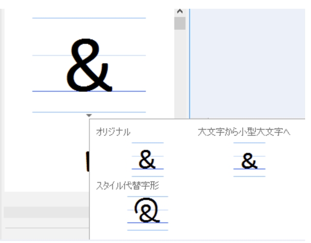 [OpenType] - 選択したフォントによって提供されている OpenType 機能 (標準合字、随意合字、分数、注記の代替字形など) がありますOpenType 機能について詳しくは、