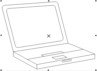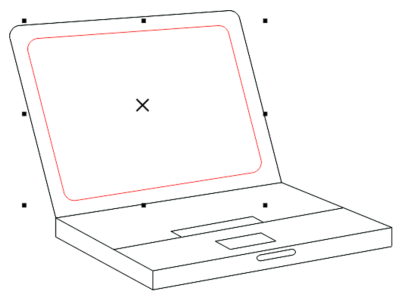 Das ausgewählte Objekt wird mit einem Auswahlrahmen und einem X in der Mitte angezeigt.
