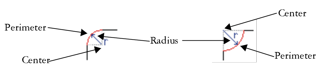 From left to right, you can see the radius of a rounded corner and the radius of a scalloped corner.