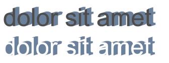 Die untere Zeile zeigt einen Blockschatten, der zurechtgeschnitten wurde, um den Bereich zu entfernen, in dem sich der Text und der Blockschatten überschneiden.