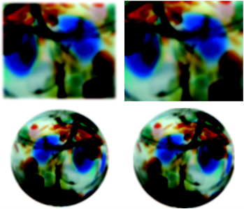 Gaußsche Unschärfe mit automatischer Vergrößerung (links); gaußsche Unschärfe ohne automatische Vergrößerung (rechts)