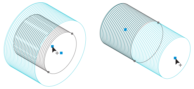 Anpassen des Radius (links) und der Länge (rechts) einer Gewindeform mithilfe der Steuerpunkte