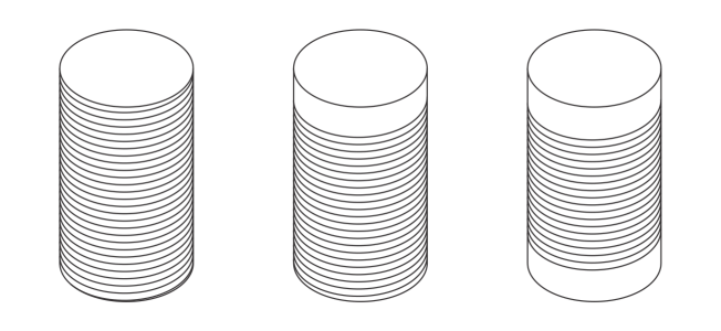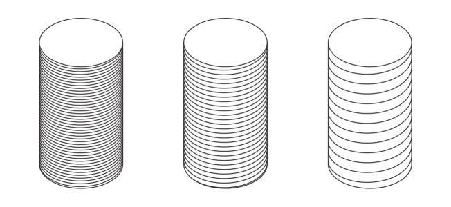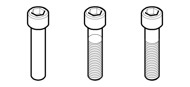 Von links nach rechts: Standardmäßige Gewindeabstandwerte; erhöhter Abstand zum Objektanfang; erhöhter Abstand zum Objektanfang und zum Objektende.