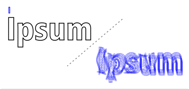 Um diesen Effekt zu erzeugen, wurden ein Rechteck und 350 Kopien des Rechtecks an der Strecke eines Textobjekts ausgerichtet
