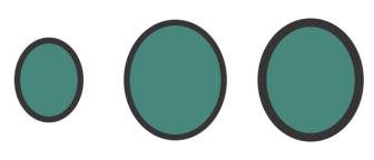 Außerdem können Sie die Position des Umrisses angeben, indem Sie ihn außerhalb oder innerhalb des Objekts platzieren oder ihn zentrieren, damit er das Äußere und das Innere des Objekts in gleichem Maße überlappt. Die Auswirkungen der Optionen für die Umrissposition sind bei dicken Umrissen deutlicher zu sehen.