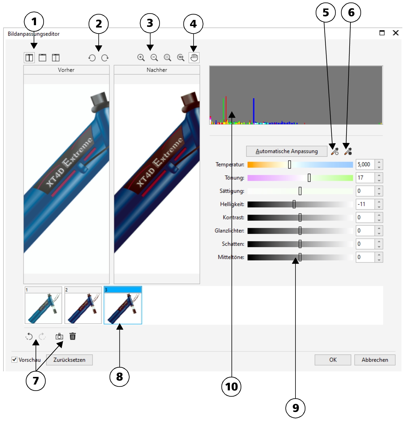 Bei der Arbeit im Bildanpassungseditor können Sie folgende Funktionen nutzen: