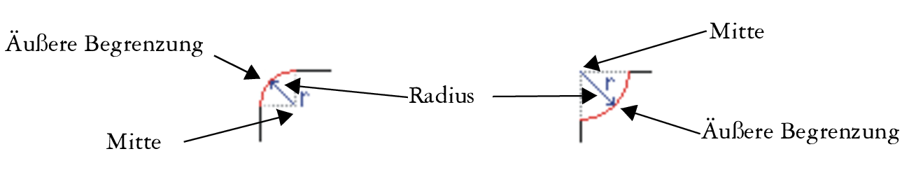 Von links nach rechts: Radius einer abgerundeten und einer ausgekehlten Ecke.