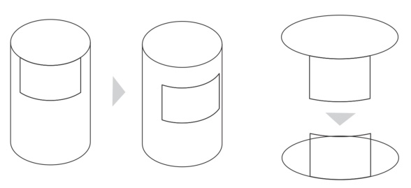 Ein Rechteck wird um einen Zylinder und eine Ellipse gewickelt