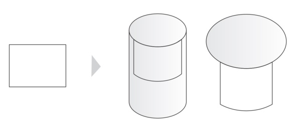 Sie können ein Objekt um einen Zylinder oder eine Ellipse wickeln, indem Sie auf das Objekt rechtsklicken, im Kontextmenü die Option Zylinder/Ellipse umhüllen wählen und anschließend auf den Zylinder oder die Ellipse klicken.