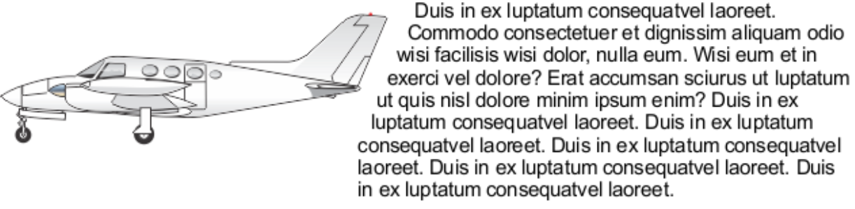 Sie können bestehenden Mengentext um ein ausgewähltes Objekt fließen lassen, indem Sie dem Objekt einen Umbruchstil zuweisen und den Textrahmen auf das Objekt ziehen.