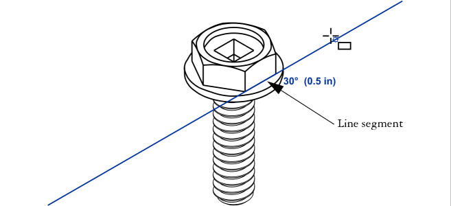 A dynamic guide was displayed from a node in the bolt on the left. The screen tip next to the node displays the angle of the dynamic guide(0º) and the distance between the node and the pointer (1.5 inches). The bolt on the right was dragged along the dynamic guide and positioned precisely 1.5 inches away from the node that was used to generate the dynamic guide.