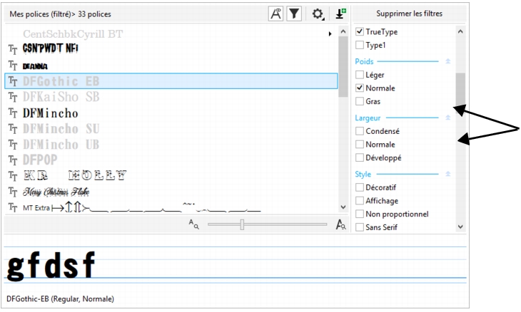 Vous pouvez facilement accéder aux polices depuis les packs de polices téléchargés en appliquant des filtres.
